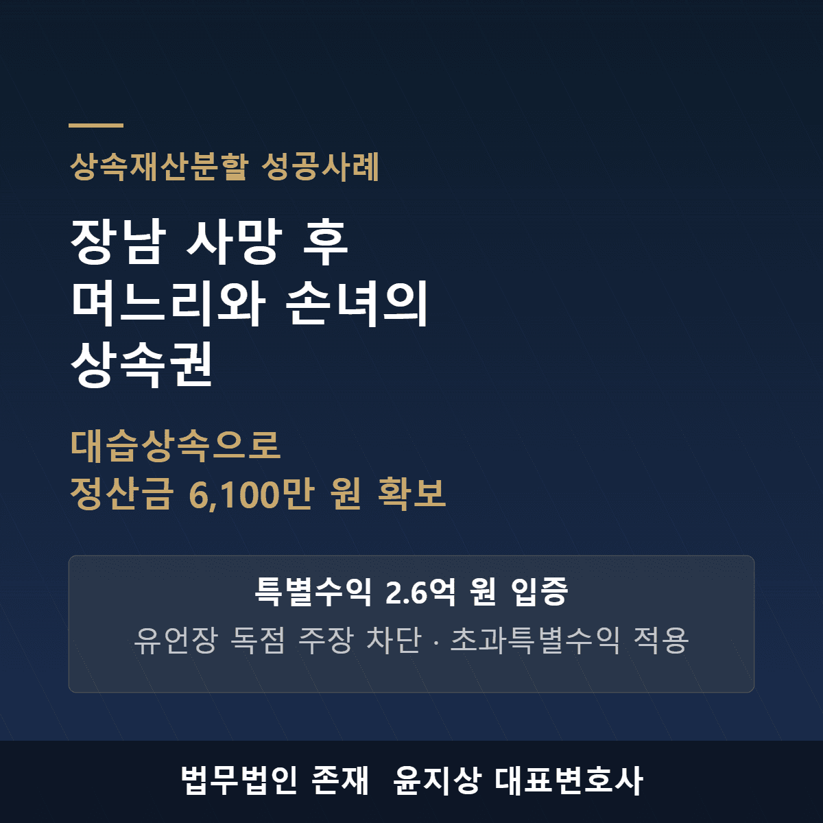 장남 사망 후 며느리와 손녀의 상속권 — 대습상속으로 부동산 정산금 6,100만 원 확보