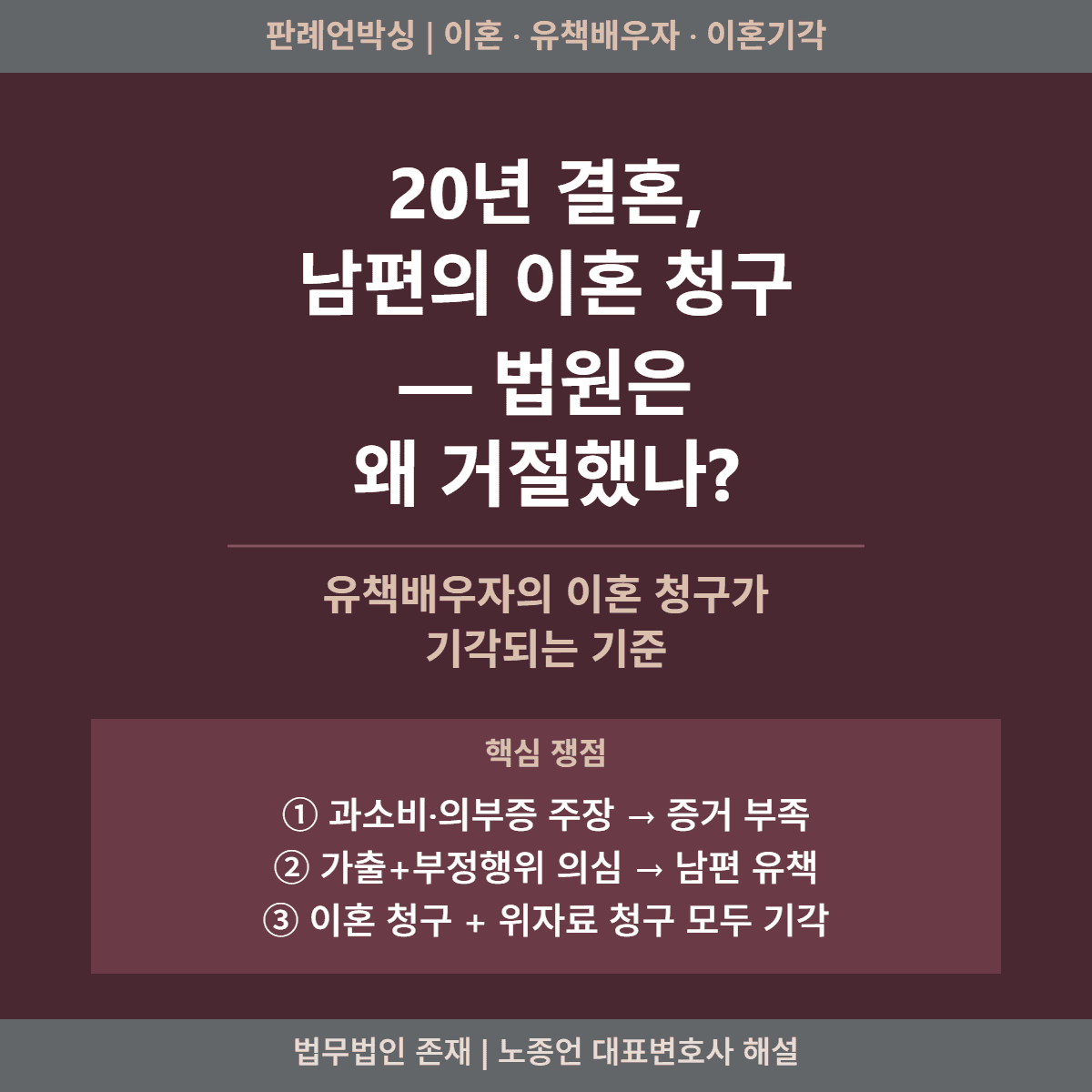 20년 결혼, 남편이 이혼을 원했지만 법원은 거절했다 — 유책배우자의 이혼 청구가 기각되는 기준