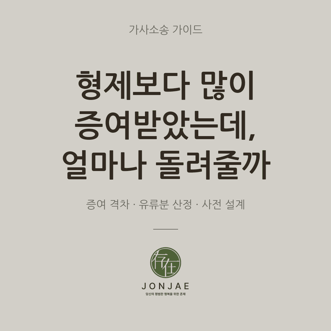 이 글에서는 형제 간 증여 격차가 클 때 유류분 부족액이 어떻게 계산되는지 시뮬레이션을 통해 보여주고, 사망 시 잔여재산의 규모에 따라 반환액이 어떻게 달라지는지 분석합니다. 아버지가 생존해 계신 지금 할 수 있는 사전 방어 전략으로 유류분 시뮬레이션, 유언장 작성, 추가 증여 설계, 형제 간 합의를 정리합니다.