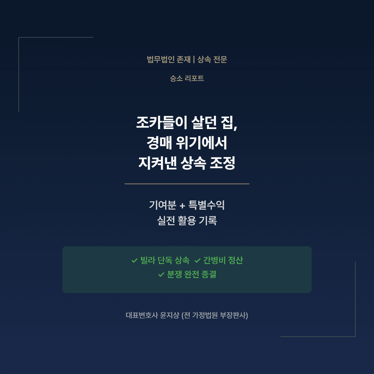 상속재산분할 기여분 특별수익 조정 성공 — 조카들 주거 보호