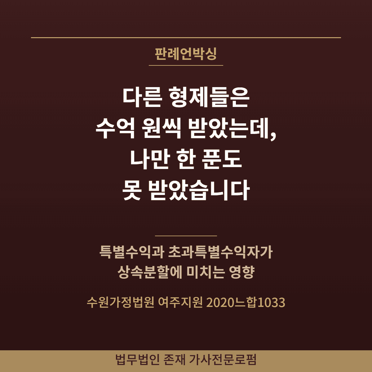 다른 형제들은 수억 원씩 받았는데, 나만 한 푼도 못 받았습니다 — 특별수익과 초과특별수익자가 상속분할에 미치는 영향