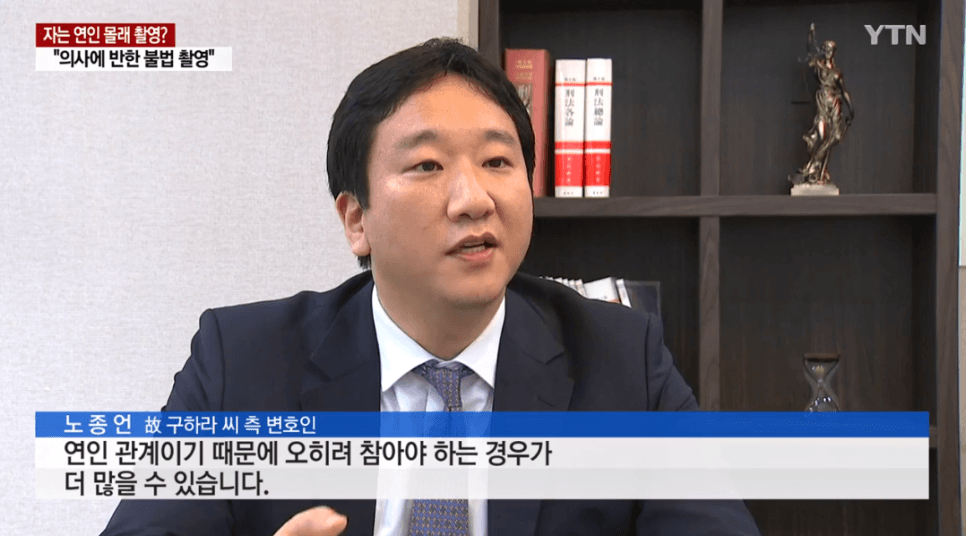 노종언 변호사는 최종범 사건에서도 같은 문제가 반복되었음을 지적하였습니다. 故 구하라 씨는 재판에서 촬영에 동의하지 않았다고 일관되게 진술하였으나, 그 진술 내용이 무시되었고 오히려 피해의 책임을 묻는 형식으로 재판이 진행되었습니다.
